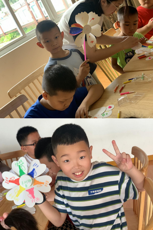 孩子們充滿熱情地揮動彩筆,運用鮮艷的顏料,將他們的想法和夢想融入到風車的每一個角落。他們的風車變得五彩斑斕、生動活潑。他們用心創(chuàng)作的風車不僅僅是一件作品,更是他們對美好未來的向往和期許。每個風車都展現(xiàn)了孩子們獨特的創(chuàng)造力和想象力,讓整個活動場地都洋溢著歡聲笑語和藝術的氛圍。