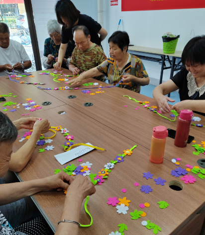 在市文明辦指導(dǎo)下,7月18日,向上社區(qū)居家養(yǎng)老服務(wù)中心與向上社區(qū)新時(shí)代文明實(shí)踐站、馬群街道新時(shí)代文明實(shí)踐所攜手開展“銀發(fā)學(xué)堂 夢圓向上”運(yùn)動(dòng)健身小課堂活動(dòng),本次課程內(nèi)容分成兩個(gè),一個(gè)是靜態(tài)的手工花環(huán)制作,一個(gè)人動(dòng)態(tài)的肩頸操,通過手工花環(huán)的制作,提高老人的手關(guān)節(jié)活動(dòng)、視力能力,通過肩頸操來維護(hù)老年人骨骼健康。在現(xiàn)場,老師充分調(diào)動(dòng)老人的參與熱情和積極性,用肩頸操等小幅度運(yùn)動(dòng)健身來預(yù)防骨質(zhì)疏松,使老人在運(yùn)動(dòng)中感受快樂、享受生活、得到樂趣。