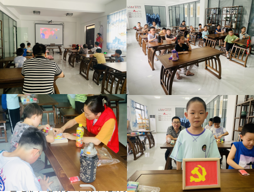 電影《閃閃的紅星》講述了上世紀(jì)30年代少年英雄潘冬子在黨和前輩的教育幫助下,逐漸成熟起來(lái)的過(guò)程。潘冬子牢記使命,機(jī)智勇敢地和敵人斗爭(zhēng)到底的意志值得贊美,而他那愛(ài)國(guó)精神,更值得我們學(xué)習(xí)。觀影結(jié)束后,孩子們紛紛表示自己也要像小英雄學(xué)習(xí)敢于和敵人斗智斗勇,現(xiàn)在好好學(xué)習(xí)長(zhǎng)大后用行動(dòng)報(bào)效祖國(guó)。活動(dòng)最后,志愿者引導(dǎo)孩子們將自己的愛(ài)國(guó)情懷抒發(fā)在制作黨旗上。志愿者先給孩子們發(fā)放制作材料相框、彩泥和圖紙等,并為孩子們講解了制作的注意事項(xiàng)。沒(méi)一會(huì)功夫,一幅幅彩泥捏畫(huà)就完成了,在孩子們的強(qiáng)烈要求下大家一起合影留戀。