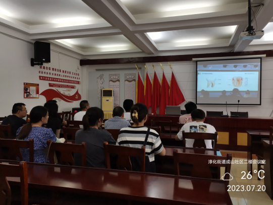 口腔健康影響全身健康,兒童和老年人是口腔健康管理尤需關(guān)注的重點(diǎn)人群,為扎實(shí)推進(jìn)暖民心行動,不斷織牢織密“一老一小”民生保障網(wǎng)。在活動中,志愿者通過視頻和ppt的形式向參加會議的居民宣傳了保護(hù)牙齒的重要性和具體方法,包括口腔健康標(biāo)準(zhǔn),老年人和兒童常見口腔疾病、口腔疾病的預(yù)防與治療等,讓參會居民全方位了解口腔健康的重要性及口腔疾病的預(yù)防和治療手段。