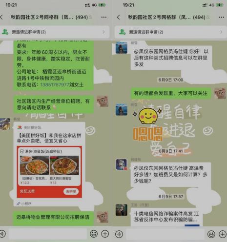 掌上云社區(qū)是南京市棲霞區(qū)邁皋橋街道秋韻園社區(qū)鏈接居民與社區(qū)的重要紐帶,其中2個重要組成部分分別為掌上云社區(qū)群和掌上云小程序,通過一年多的沉淀和鋪墊,目前在掌上云社區(qū)活躍的居民占比超過60%。社區(qū)通過掌上云社區(qū)“紅韻智家”社區(qū)專線發(fā)布各類信息,有社區(qū)活動、社區(qū)動態(tài)、科普知識、生活小技巧等豐富多彩的板塊,除此之外還有社區(qū)居民議事、為民項目投票吸引居民多多參與社區(qū)基層治理,在后疫情時代,社區(qū)工作人員通過統(tǒng)計群內(nèi)信息內(nèi)容發(fā)現(xiàn),居民們對招聘信息的關(guān)注度變高了。