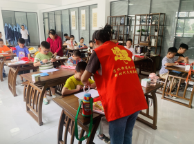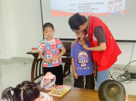 活動(dòng)伊始,志愿者首先向孩子們宣講了“八一”建軍節(jié)的意義、革命先輩保家衛(wèi)國(guó)抗日戰(zhàn)爭(zhēng)的光榮事跡,激發(fā)孩子們學(xué)習(xí)革命精神、珍惜來(lái)之不易的美好生活,從小樹(shù)立擁軍愛(ài)國(guó)的思想理念。緊接著,志愿者帶領(lǐng)孩子們一起閱讀《紅色少年的故事》、《鐵道游擊隊(duì)》、《兩個(gè)小八路》等紅色書(shū)籍,并在孩子們閱讀之后邀請(qǐng)他們上臺(tái)發(fā)表自己的感想。為了鼓勵(lì)孩子們大膽表達(dá),志愿者還給孩子們準(zhǔn)備了小禮物。