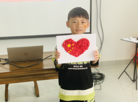 活動(dòng)最后,志愿者還播放了《地道戰(zhàn)》影片的相關(guān)片段和孩子們一起領(lǐng)略在中國(guó)共產(chǎn)黨的領(lǐng)導(dǎo)下,工農(nóng)游擊隊(duì)是如何巧妙與敵人周旋,利用自己的優(yōu)勢(shì)打擊敵人的故事。孩子們?cè)诩t色書(shū)籍和影片渲染下產(chǎn)生了強(qiáng)烈的愛(ài)國(guó)熱情。隨后,志愿者引導(dǎo)孩子們將自己的愛(ài)國(guó)熱情通過(guò)手工貼畫(huà)制作表達(dá)出來(lái)。志愿者先給孩子們分發(fā)了手工材料 ,并講解了制作的注意事項(xiàng)。緊接著孩子們就迫不及待地動(dòng)手制作了起來(lái),沒(méi)一會(huì)功夫,一幅幅創(chuàng)意貼畫(huà)就制作完成了,大家彼此欣賞并主動(dòng)要求上臺(tái)合影留戀。