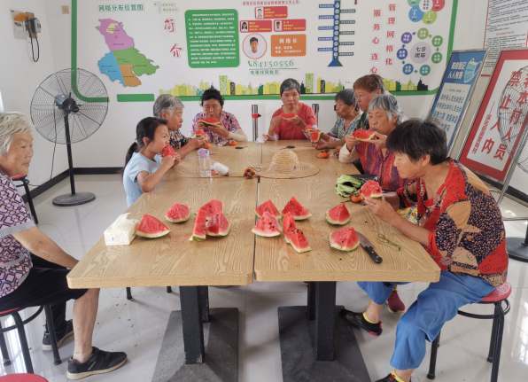 在“啃秋”環(huán)節(jié),志愿者切好西瓜發(fā)給村民,村民們一邊大口大口地吃著西瓜,一邊聽志愿者科普二十四節(jié)氣的由來以及立秋和“啃秋”傳統(tǒng)習(xí)俗的相關(guān)知識(shí),每個(gè)人都“啃”得不亦樂乎,歡笑聲充斥著整個(gè)活動(dòng)室。