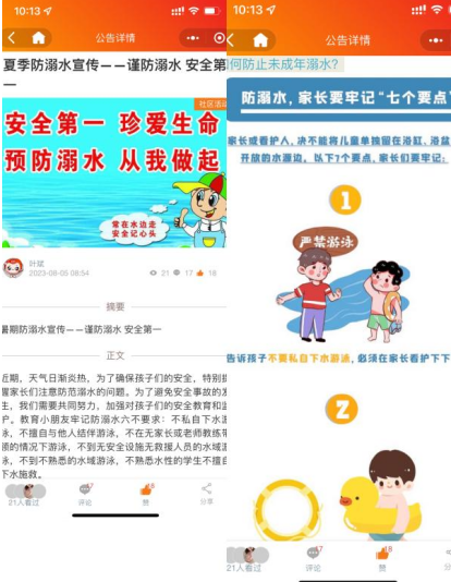 此次利用掌上云社區(qū)平臺宣傳防溺水安全教育活動起到了較好的警示作用,在提高孩子們防溺水的安全意識的同時,也為孩子們構(gòu)筑了安全防護。
