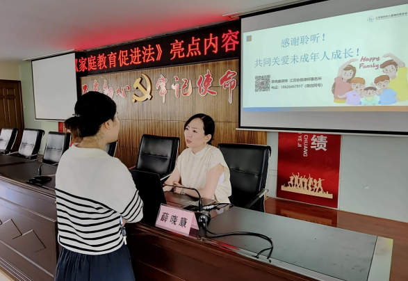 為進(jìn)一步優(yōu)化婦女兒童生存和發(fā)展環(huán)境,發(fā)揮法治宣傳教育在維護(hù)婦女兒童合法權(quán)益、促進(jìn)社會(huì)和諧穩(wěn)定中的重要作用,江蘇省婦女聯(lián)合會(huì)、江蘇省婦女兒童福利基金會(huì)聯(lián)合實(shí)施“我助婦兒康·婦兒權(quán)益維護(hù)與安全守護(hù)課堂”公益項(xiàng)目。為推動(dòng)此項(xiàng)目在基層落地發(fā)芽,8月6日,南京市江寧區(qū)江寧街道新銅社區(qū)婦聯(lián)結(jié)合“三全”家庭教育支持行動(dòng),聯(lián)合江蘇協(xié)恒律師事務(wù)所,在家長(zhǎng)學(xué)校開(kāi)展了“我助婦兒康·婦兒權(quán)益維護(hù)與安全守護(hù)課堂”之“《家庭教育促進(jìn)法》亮點(diǎn)內(nèi)容及案例解讀”法治宣傳講座。