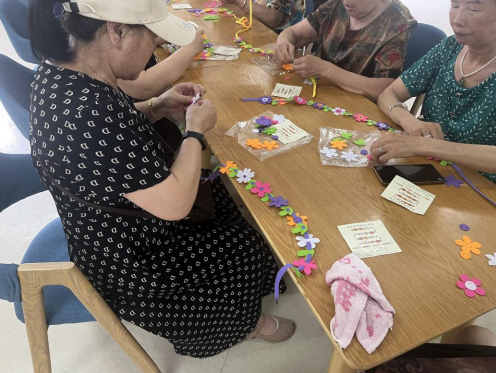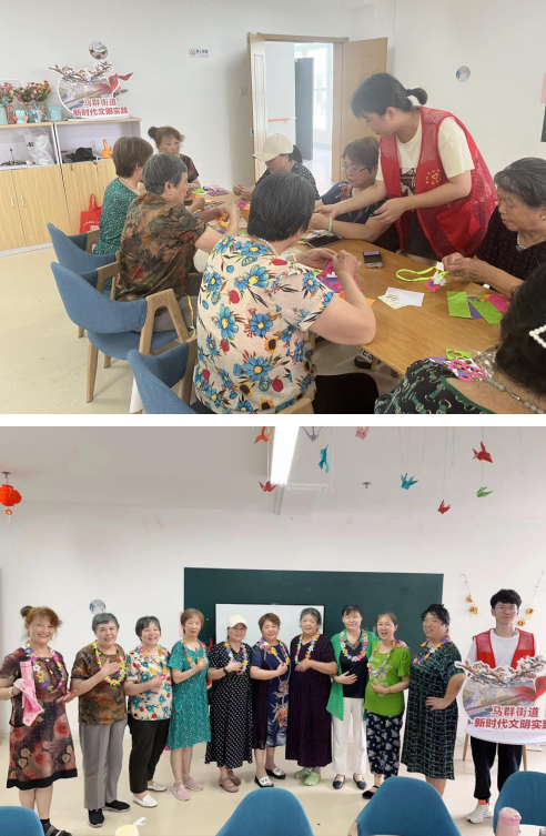 活動現(xiàn)場熱鬧非凡,老年朋友們相互交流并愉快地分享自己的經(jīng)驗和感受。通過這次活動,老年朋友們不僅獲得了一件可愛又獨特的花朵項鏈,更重要的是收獲了快樂和歸屬感。