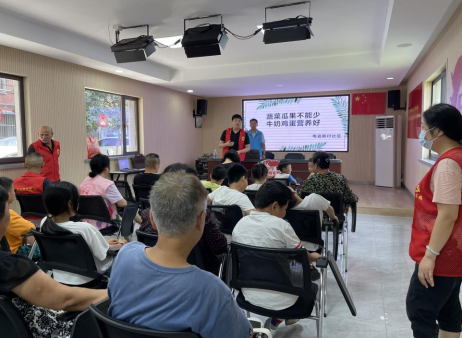 此次食品安全講座,還向居民表述了,要注意飲食搭配,“蔬菜瓜果不能少、牛奶雞蛋營養(yǎng)好。”除了要保障蛋白質(zhì)的攝入,蔬菜維生素的營養(yǎng)一樣不能少,這樣才有助于身體健康。來參加此次活動(dòng)的居民,也紛紛意識(shí)到了飲食搭配的重要性,講座活動(dòng)現(xiàn)場(chǎng),有一大學(xué)生朋友現(xiàn)場(chǎng)上臺(tái)向居民們描述了他現(xiàn)在放暑假在家的一日三餐,是如何進(jìn)行飲食搭配的。居民們紛紛表示學(xué)到了很多,贏得了居民們的一致好評(píng)、熱烈鼓掌。