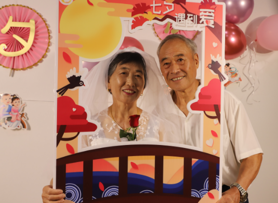 為慶祝七夕佳節(jié),南京市江寧區(qū)秣陵街道牛首社區(qū)聯(lián)合寧好居家養(yǎng)老服務(wù)中心組織開(kāi)展“七夕浪漫如歌 老人相伴不移”主題拍攝活動(dòng),邀請(qǐng)轄區(qū)內(nèi)十余對(duì)金婚銀婚老人在社區(qū)居家養(yǎng)老服務(wù)站拍攝紀(jì)念照。