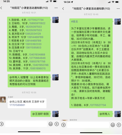 活動前期,向上社區(qū)通過“掌上云”在群內(nèi)發(fā)布活動通知,招募小朋友們參加活動,小朋友們積極響應,一天時間就將名額報滿。