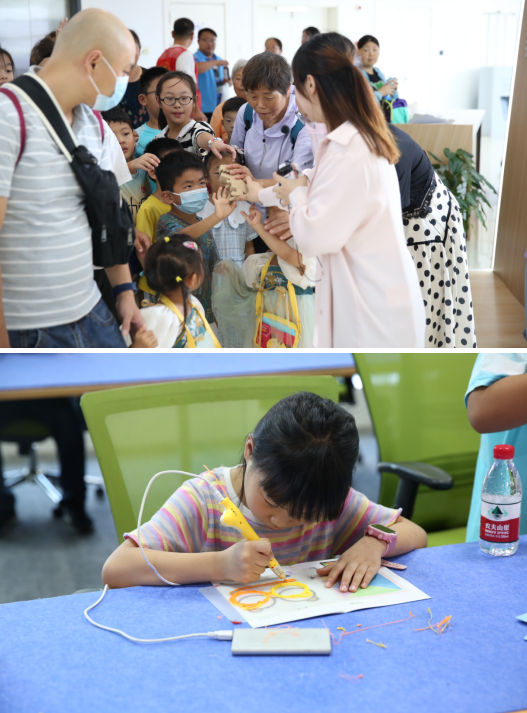 活動當天,社區(qū)工作人員帶領(lǐng)30多位青少年和家長來到學習基地,實地參觀,多方面了解各種科技工具及作品,學習其中科技因素與科普知識。隨后,進行科技課程體驗,認識3d打印筆及操作方式,孩子們紛紛開動腦筋,動手創(chuàng)作自己的作品,在科學實踐中感受科技的魅力。大家在學習與制作體驗的過程中不斷思考,踴躍探索,體會科學帶來的樂趣。希望這次研學之旅能帶給孩子們不一樣的快樂,從書本以外的途徑獲取知識,普及科學知識,培養(yǎng)探究精神,提高動手能力。