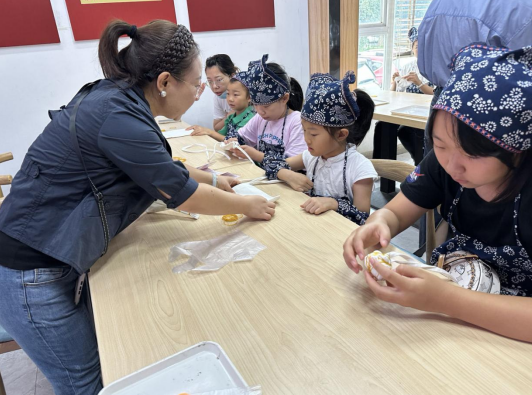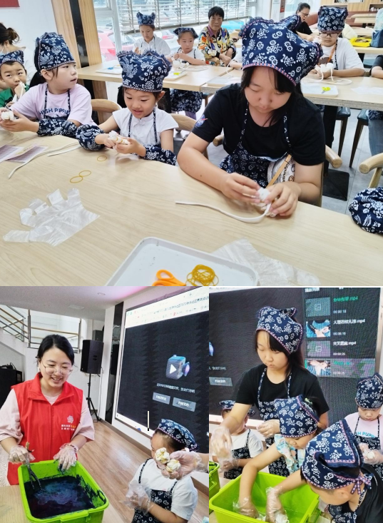 接著,志愿者們引導孩子們逐步學習扎染的步驟,從準備材料到選擇圖案,再到上色扎染。在這個扎染活動中,孩子們充分體驗到了親手創(chuàng)作的樂趣。他們用專業(yè)的扎染工具,將自己的設計和創(chuàng)意融入到織物中,一針一線地勾勒出美麗的圖案。他們體會到了扎染的獨特之處,每一次的操作都是一次細膩的藝術(shù)表達。孩子們的眼神中充滿了興奮和自豪,他們不僅僅是在創(chuàng)作,更是在用心傳承著扎染這門古老的技藝。