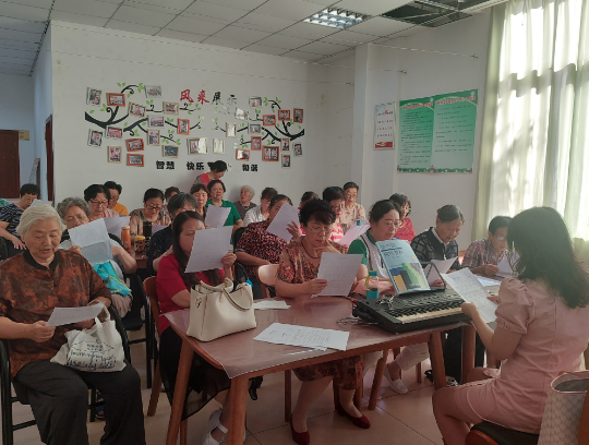 2023年9月1日,果場社區(qū)關(guān)工委、居民學(xué)校依托社區(qū)新時代文明實踐站,聯(lián)合南京萊臻老年大學(xué),三槐長者照護(hù)果場站點在社區(qū)綜合文化服務(wù)中心,組織社區(qū)老年居民開展合唱興趣班志愿服務(wù)活動。