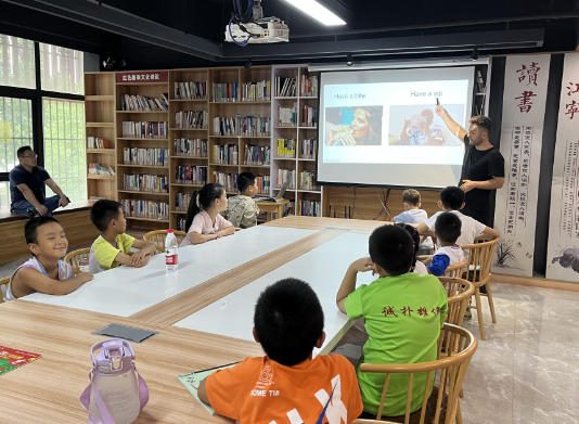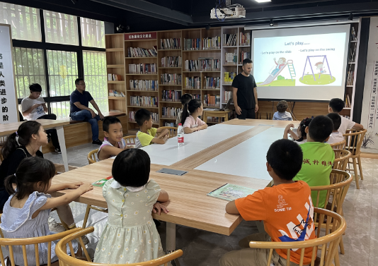 為了提升社區(qū)內(nèi)少年兒童英語學(xué)習(xí)的語言環(huán)境、促進(jìn)孩子們學(xué)習(xí)英語的熱情和積極性,9月3日下午,南京市江寧區(qū)秣陵街道殷巷社區(qū)新時代文明實踐站聯(lián)合南京市江寧區(qū)微光閱讀服務(wù)中心在康博睦鄰書房二樓舉辦英文閱讀推廣活動——《Let’s Play》?;顒友埻饨蘆oe老師舉辦日常英語對話學(xué)習(xí)交流活動,幫助孩子們學(xué)習(xí)英語國家地道日常交流用語,旨在提升社區(qū)內(nèi)少年兒童的英語學(xué)習(xí)環(huán)境,激發(fā)孩子們對學(xué)英語的熱情和積極性。