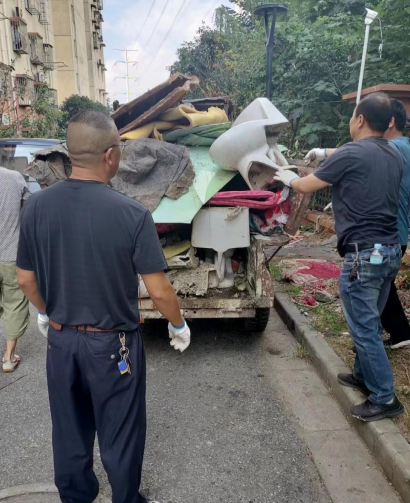 在清理活動(dòng)開始后,實(shí)踐站志愿者和社區(qū)工作人員分成了兩組,一組清理樓道垃圾,一組清理小區(qū)內(nèi)衛(wèi)生死角。清理樓道垃圾的志愿者將樓道內(nèi)堆積的雜物和紙盒等垃圾全部打包到了垃圾袋內(nèi),清理出了樓道,清理過(guò)后的樓道顯得干凈明亮,也消除了樓棟消防安全隱患。清理小區(qū)室外衛(wèi)生死角的志愿者將居民違規(guī)堆在綠化上的垃圾統(tǒng)一進(jìn)行搬運(yùn)清理,然后將綠化進(jìn)行了恢復(fù)補(bǔ)種。經(jīng)過(guò)志愿者和工作人員的共同努力,本次環(huán)境衛(wèi)生整治總共清理了9車?yán)?/p>