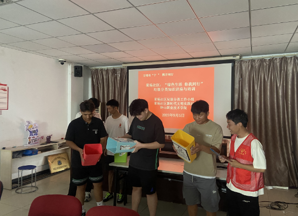 2023年9月5日,果場(chǎng)社區(qū)垃圾分類推進(jìn)工作小組聯(lián)合鐘山職業(yè)技術(shù)學(xué)院,依托社區(qū)新時(shí)代文明實(shí)踐站,組織社區(qū)民兵志愿者、城治志愿者、“齊益果”積分制志愿者等社區(qū)年輕居民骨干在社區(qū)三樓活動(dòng)室,進(jìn)行了一場(chǎng)“綠色生活 你我同行”主題的垃圾分類知識(shí)講座與培訓(xùn)。