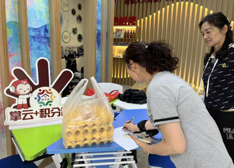 活動當(dāng)天,前來兌換的居民憑著掌上云平臺線上商城的兌換訂單,排著隊有序兌換,時不時還相互交流自己上個月的“賺分技巧”。“積分不太夠,這次只能換50個雞蛋,下個月我要多參與志愿活動,攢攢積分。”志愿者杜阿姨說道。積分換來的不只是看得見的實惠,更是一種發(fā)自內(nèi)心的參與感。