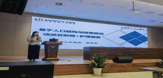 江蘇省第二中醫(yī)院護(hù)理部主任程喜榮講解《基于人口結(jié)構(gòu)與政策驅(qū)動(dòng)淺談互聯(lián)網(wǎng)+護(hù)理服務(wù)》