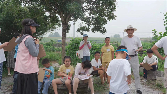 隨后,大家一起來到了陳家祠堂遺址,在院內(nèi)的大樹下,熟知村莊歷史的徐爺爺給孩子們講起了夏莊村的歷史古跡,陳家祠堂、李家祠堂、九十九間半遺址.....徐爺爺說起故事來如數(shù)家珍,孩子們聽得津津有味。