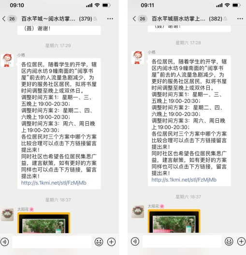 百水芊城社區(qū)通過“掌上云”線上協(xié)商調整閱讀陣地開放時間