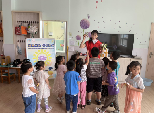 活動現(xiàn)場,社區(qū)志愿者通過講解社會、健康、語言、藝術等方面的知識,向孩子們傳授常見的情緒調節(jié)技巧和積極的心態(tài)培養(yǎng)方法,幫助他們建立積極的人生態(tài)度,并且告知他們做一個快樂的人的重要性。