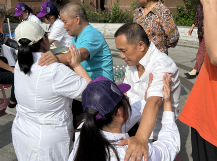 在中醫(yī)推拿體驗(yàn)區(qū),來(lái)自南京中醫(yī)藥大學(xué)義診團(tuán)隊(duì)的志愿者們讓小區(qū)居民免費(fèi)體驗(yàn)了一次中醫(yī)推拿,讓居民們切身感受來(lái)自中華傳統(tǒng)醫(yī)學(xué)的魅力。