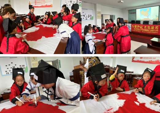 活動最后,孩子們齊心協(xié)力,用筆繪制出了美麗的中國版圖,展示了對祖國的熱愛和祝福。