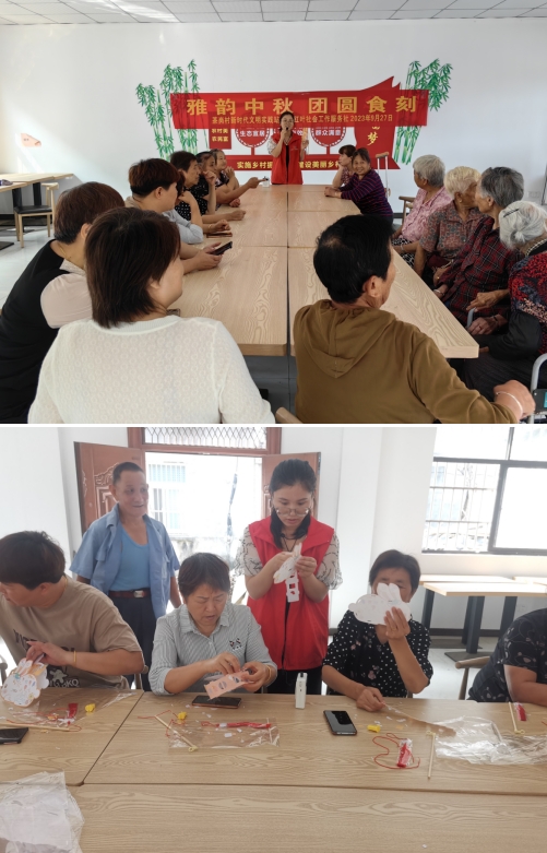 燈籠是我國傳統(tǒng)文化的典型元素之一,代表著人們對于吉祥如意的祈愿和美好生活的向往?;顒右潦?,社工首先向村民們講解了中秋節(jié)的來源、習(xí)俗等相關(guān)知識,接著社工耐心地講解燈籠的組裝過程,手把手教村民制作手工燈籠。制作過程中,大家跟著志愿者一步步組裝、粘貼、裝燈,大家相互交流、相互協(xié)助,活動室里充滿著濃濃的中秋節(jié)日氛圍。小小燈籠,傳遞的不僅僅是一聲節(jié)日的祝福,更多的是對傳統(tǒng)文化的一種弘揚(yáng)和傳承。