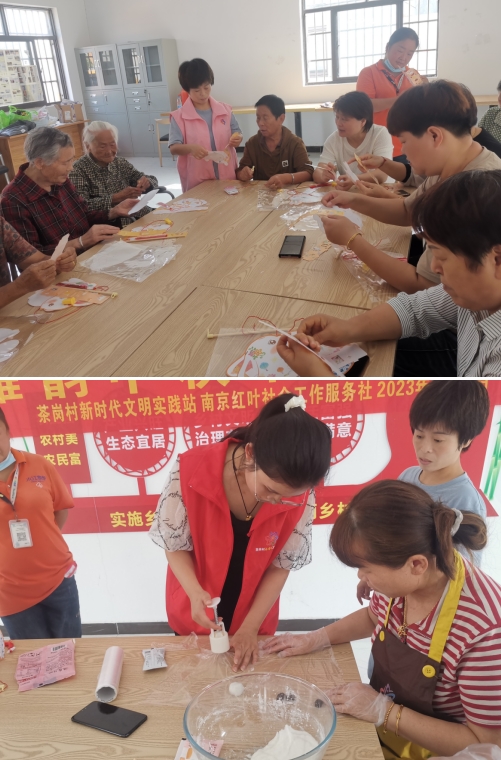 “冰皮月餅制作簡單,無需烘烤,是一種可以直接吃或者冷藏半個小時就可以吃的月餅。”在制作冰皮月餅環(huán)節(jié),社工向村民詳細(xì)講解了關(guān)于冰皮月餅制作的知識和技巧,并為大家分發(fā)所需預(yù)拌粉、餡料和模具等材料。聽完社工的講解后,大家組成四個小組,迫不及待地開始制作冰皮月餅,揉面團(tuán)、包餡兒、按壓成型……村民們相互幫襯、團(tuán)結(jié)協(xié)作,每個人都化身為“面點高手”,在一片歡聲笑語中,一個個精致的冰皮月餅逐漸成型,看著自己親手制作的月餅,村民們臉上樂開了花。