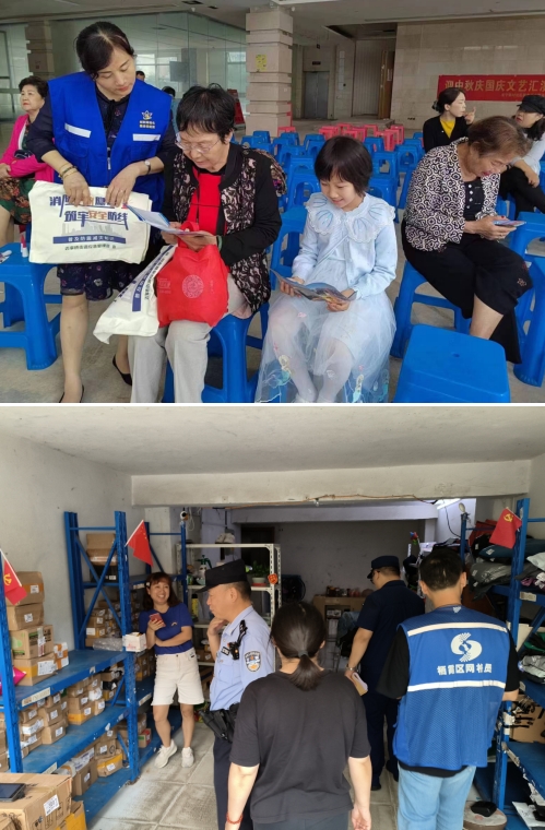 活動(dòng)現(xiàn)場(chǎng),社區(qū)工作人員向居民們發(fā)放科普宣傳畫冊(cè),同時(shí),從“防火、滅火、逃生、自救”等方面向居民民詳細(xì)介紹火災(zāi)形成、自救方法及滅火器種類及操作方式。并在雙節(jié)來(lái)臨之際,倡導(dǎo)居民安全出行、文明旅游。同時(shí),社區(qū)科普志愿者聯(lián)合網(wǎng)格員、派出所片警、消防特勤、物業(yè)人員對(duì)轄區(qū)內(nèi)九小場(chǎng)所場(chǎng)所進(jìn)行安全生產(chǎn)隱患全面排查,并現(xiàn)場(chǎng)進(jìn)行消防安全知識(shí)科普。