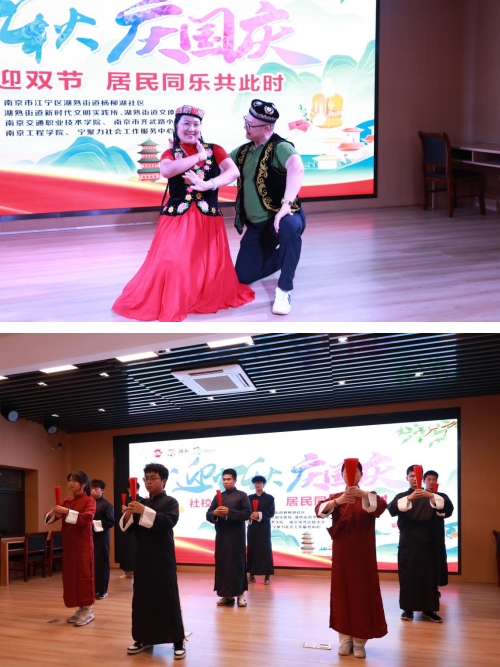 金秋送爽,萬里河山披錦繡;丹桂飄香,一輪明月寄深情。為弘揚中華民族優(yōu)秀傳統(tǒng)文化,豐富居民的精神文化生活。正值中秋國慶雙節(jié)之際,南京市江寧區(qū)湖熟街道楊柳湖社區(qū)聯(lián)合南京工程學院自動化學院、南京交通職業(yè)技術(shù)學院運輸管理學院、南京市齊武路小學開展“社校共建迎雙節(jié)、居民同樂共此時”文藝晚會活動。