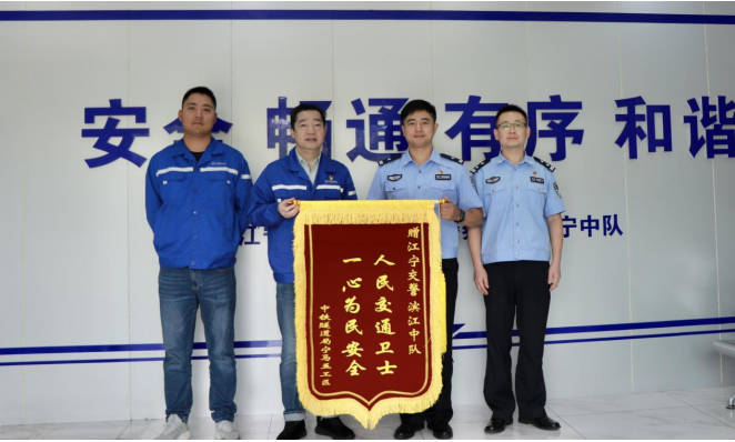 交警助寧馬,溫暖百姓心。在雙節(jié)來(lái)臨之際,中鐵隧道局集團(tuán)寧馬五工區(qū)向江寧交警濱江中隊(duì)獻(xiàn)上一面錦旗,對(duì)全體指戰(zhàn)員辛勤地工作作風(fēng)表示衷心的感謝。