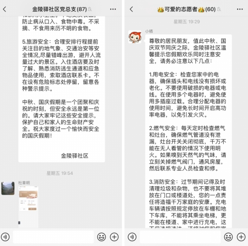 為大力營造中秋、國慶假期安全宣傳氛圍,預(yù)防各類事故發(fā)生,金陵驛社區(qū)立足實(shí)際,多管齊下,大力開展多種形式的安全宣傳活動(dòng),廣泛普及安全常識(shí),確保轄區(qū)群眾度過一個(gè)安全祥和的節(jié)日。