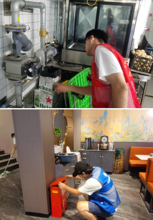 在檢查中,安全員和志愿者對(duì)商戶的消防器材進(jìn)行了逐一檢查,檢查店內(nèi)滅火器材是否失效,是否配齊等;同時(shí)重點(diǎn)對(duì)轄區(qū)餐飲店的廚房燃?xì)庠O(shè)施和燃?xì)庑孤﹫?bào)警器進(jìn)行了檢查,檢查燃?xì)鈭?bào)警器是否正常工作以及缺失等。在檢查中發(fā)現(xiàn)的滅火器配備不足等問題,及時(shí)反饋給商家,督促商家及時(shí)整改。安全員會(huì)定期巡查,將整改不到位的商戶進(jìn)行上報(bào)處理。