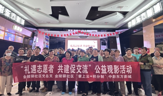 近日,金陵驛社區(qū)聯(lián)合黨建共建單位、掌云+積分制聯(lián)盟商戶中影東方影城開展“禮遇志愿者 共建促交流 ”公益觀影活動。
