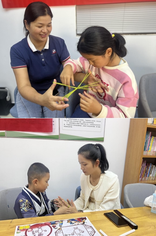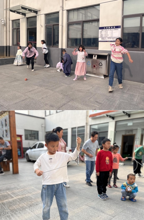 在活動(dòng)中,工作人員特別設(shè)計(jì)了一款手工互動(dòng)游戲,通過游戲的方式讓孩子們參與其中,更好地理解家庭美德的重要性。這款游戲以家庭共同收獲為主題,通過讓孩子們制作一份手工禮物,用心寫下感恩的話語,去表達(dá)對(duì)家人的愛和感激之情。這不僅培養(yǎng)了孩子們的動(dòng)手能力,還讓他們深刻體會(huì)到家庭的溫暖和陪伴的重要性。隨后社工還帶領(lǐng)孩子和家長們一起玩以前的老游戲——翻花繩、扔沙包、滾鐵輪,體驗(yàn)家長們兒時(shí)的樂趣。