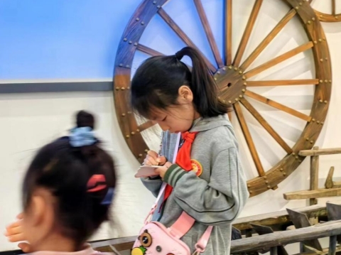 在親身接觸到古代農(nóng)具、了解農(nóng)業(yè)知識(shí)的過(guò)程中,小朋友們感悟繁多,紛紛拿出隨身攜帶的紙筆進(jìn)行記錄。