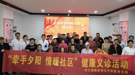 10月18日上午八點半,農(nóng)工黨南京市江寧區(qū)醫(yī)務支部的8名黨員醫(yī)務人員組成義診醫(yī)療組,赴東山街道上坊社區(qū)聚心殘疾人之家開展義診活動。