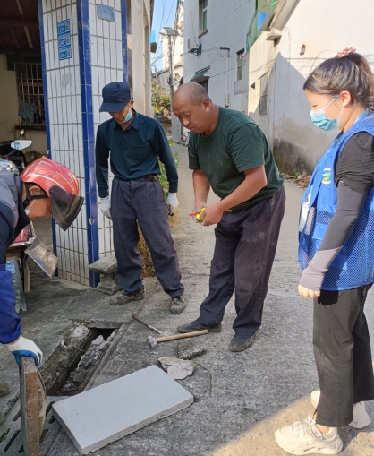 為解決破損的蓋板,李蓮第一時(shí)間叮囑周?chē)罕姡鲩T(mén)時(shí)要注意腳下安全,同時(shí)也找到幾塊磚頭將破損的地方先鋪平,再回到社區(qū)拿著皮尺丈量出下水道蓋板的長(zhǎng)度與寬度,并將此事上報(bào)社區(qū)領(lǐng)導(dǎo),社區(qū)立即安排專業(yè)人員實(shí)地查看,對(duì)破損的蓋板進(jìn)行拍照、尺寸大小進(jìn)行測(cè)量計(jì)算、登記匯總。經(jīng)過(guò)專業(yè)師傅的巧手,蓋板換新裝,守護(hù)居民腳下安全。