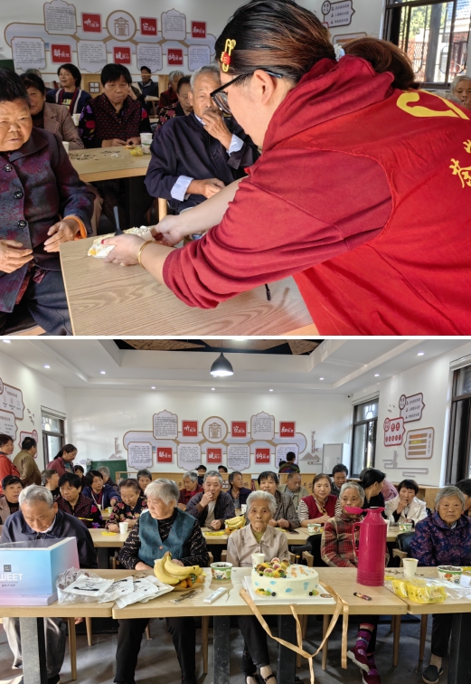 活動(dòng)開始前,社工準(zhǔn)備了各種水果和重陽節(jié)蛋糕,讓老人們切身感受著濃濃的節(jié)日氛圍。接著志愿者向老人們介紹著重陽節(jié)的由來和習(xí)俗,增強(qiáng)他們對(duì)傳統(tǒng)節(jié)日文化的了解;隨后,志愿者給老人們倒上菊花茶,大家一邊吃著喝著一邊觀看愛國主義教育電影。