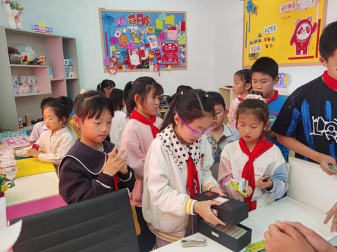“你好,我想換一把尺子!”“我想要一枚童星勛章!”“我想為我們班級點(diǎn)一首歌。”剛吃完飯,孩子們就迫不及待地手持“五彩券”,在南灣營小學(xué)“掌上云社區(qū)”驛站門口排起了長長的隊(duì)伍。兌換區(qū)的學(xué)生人頭攢動(dòng),每個(gè)孩子都在精心挑選自己心儀的物品,臉上都洋溢著快樂的笑容。同學(xué)們用自己努力贏得的五彩券換取自己心儀的獎(jiǎng)品,對他們自己來說是極大的獎(jiǎng)勵(lì),對其他同學(xué)來說也起到很大的鼓舞作用。