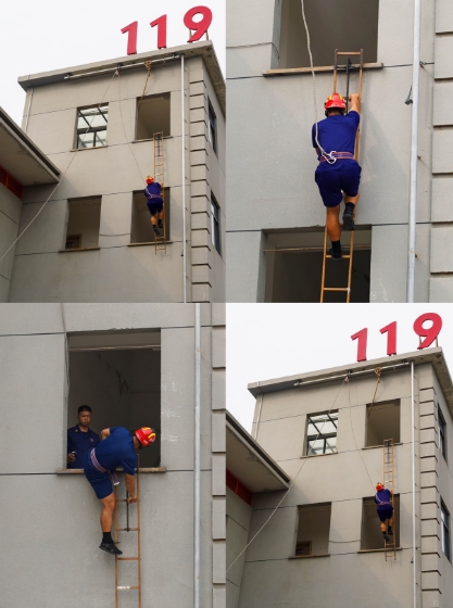 三是消防演練表演。表演有高樓攀爬,展現(xiàn)消防員“高速”;快速接通消防水帶,彰顯“高效”;高射水炮、“A”字噴水、噴頭變化等體現(xiàn)出消防員面對不同火情采取不同應(yīng)對的“專業(yè)”。