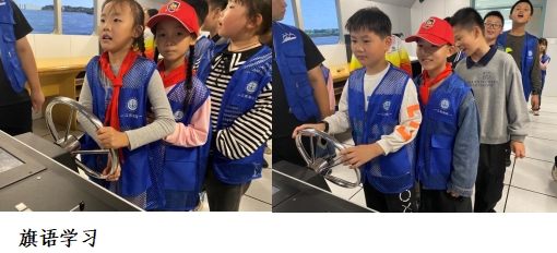 你瞧,小朋友們認(rèn)真聆聽,大家一起仔細(xì)研究不同旗語的動作含義,一舉一動中都顯露著濃厚的求知欲。“紙上得來終覺淺,絕知此事要躬行”。在海事學(xué)院老師的指導(dǎo)下,孩子們揮舞旗幟學(xué)得有模有樣呢!