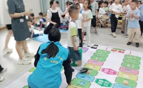 為了讓幼兒園的小朋友們進(jìn)一步認(rèn)識(shí)垃圾分類的意義,志愿者們用通俗易懂的語(yǔ)言和發(fā)放宣傳手冊(cè)向小朋友宣傳講解垃圾分類的目的和分類方式等相關(guān)知識(shí),利用帶來(lái)的垃圾分類玩具桶,這樣也更直觀形象地為小朋友們對(duì)于可回收物、其他垃圾、有害垃圾、易腐垃圾的分類及如何投發(fā)做了詳細(xì)的講述,同時(shí)也通過(guò)擲骰子游戲方式引起小朋友們濃厚的學(xué)習(xí)樂(lè)趣,也準(zhǔn)備了小禮品給予能夠成功垃圾分類的小朋友,讓他們?cè)跈z驗(yàn)自己學(xué)習(xí)垃圾分類知識(shí)成果的時(shí)候也能收獲快樂(lè)。