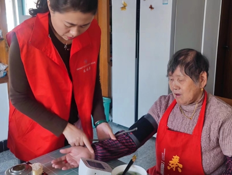 牛首社區(qū)呵護老人,細心測壓,文明實踐