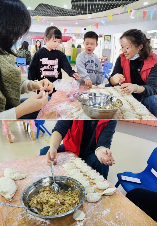 活動(dòng)開始,大家分工明確,各自洗凈雙手,洗菜、切菜、剁肉餡、和面、包餃子,干勁十足,忙得不亦樂乎。只見一雙雙巧手上下翻飛,薄薄的餃子皮逐一被填餡、塑形,不一會(huì)兒,數(shù)百個(gè)餃子就全部包好了,還摻雜著不少由小朋友包的創(chuàng)新性餃子,大家都感到滿滿的成就感。一個(gè)個(gè)皮薄餡大的餃子很快便擺滿了桌子,濃濃的情意溫暖了人們的心,現(xiàn)場(chǎng)歡聲笑語、其樂融融。