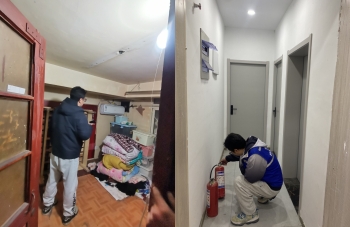 現(xiàn)場(chǎng),工作人員、派出所民警及消防人員等,重點(diǎn)就“三合一”場(chǎng)所的安全出口數(shù)量、疏散門的開啟方向是否符合要求,疏散通道、安全出口是否被堵塞,滅火器的配置、電器線路鋪設(shè)是否符合要求、有無(wú)線路老化現(xiàn)象,場(chǎng)所內(nèi)有無(wú)違規(guī)住人等情況進(jìn)行檢查。