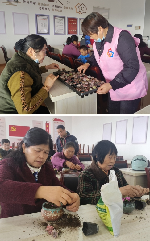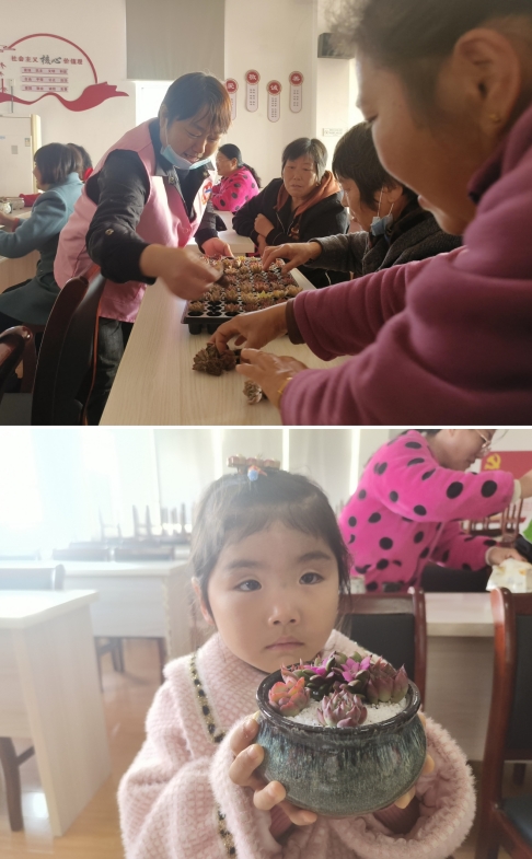 活動中,鶴齡社區(qū)志愿者通過宣講,向現場社區(qū)居民宣傳了建設美麗庭院的益處,倡導社區(qū)居民對自家庭院進行美化改造。同時,志愿者請花店的老板教社區(qū)居民種植多肉小盆栽。老板通過折剪多肉的多余根莖,使其能夠更好得生長,然后將多個多肉移植到一個新的花盆中,不一會兒,一個新的多肉盆栽便完成了。這次活動主要是教會社區(qū)居民們制作多肉盆栽,通過一個小小的綠植來裝飾自己的家,從而達到以庭院“小美”成就鄉(xiāng)村“大美”的主題思想。