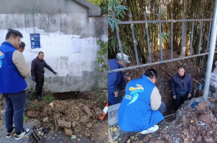 網(wǎng)格員方向霖第一時間聯(lián)系了社區(qū)的水工,并在周邊進行了勘察工作。水工迅速趕到現(xiàn)場發(fā)現(xiàn),滲水的原因確實是自來水管破裂。然而,在挖掘水管的過程中,他們發(fā)現(xiàn)水管被埋藏在一堵圍墻下面,這給尋找破損點帶來了很大的困難。