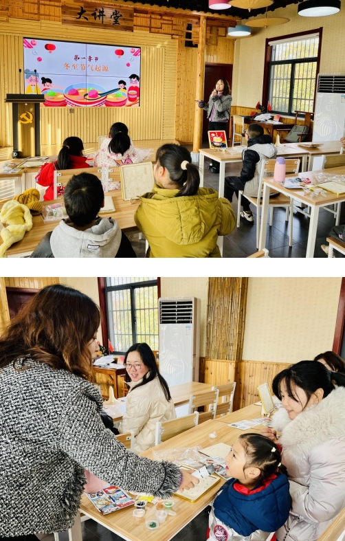 本次活動我們帶領孩子們一起制作冬至主題的紙漿畫,紙漿畫主要以紙漿為主要材料創(chuàng)作,可以在木、瓷、玻璃、石、紙等多種材料上繪制,風干后即可成品。老師向孩子們介紹了紙漿畫的歷史和制作方法。聽完講解,孩子們迫不及待地開始了紙漿畫的制作,制作漿泥、繪圖、并用不同顏色的紙漿精心裝飾,將節(jié)氣元素融入手工作品中,現(xiàn)場氣氛非?;钴S。